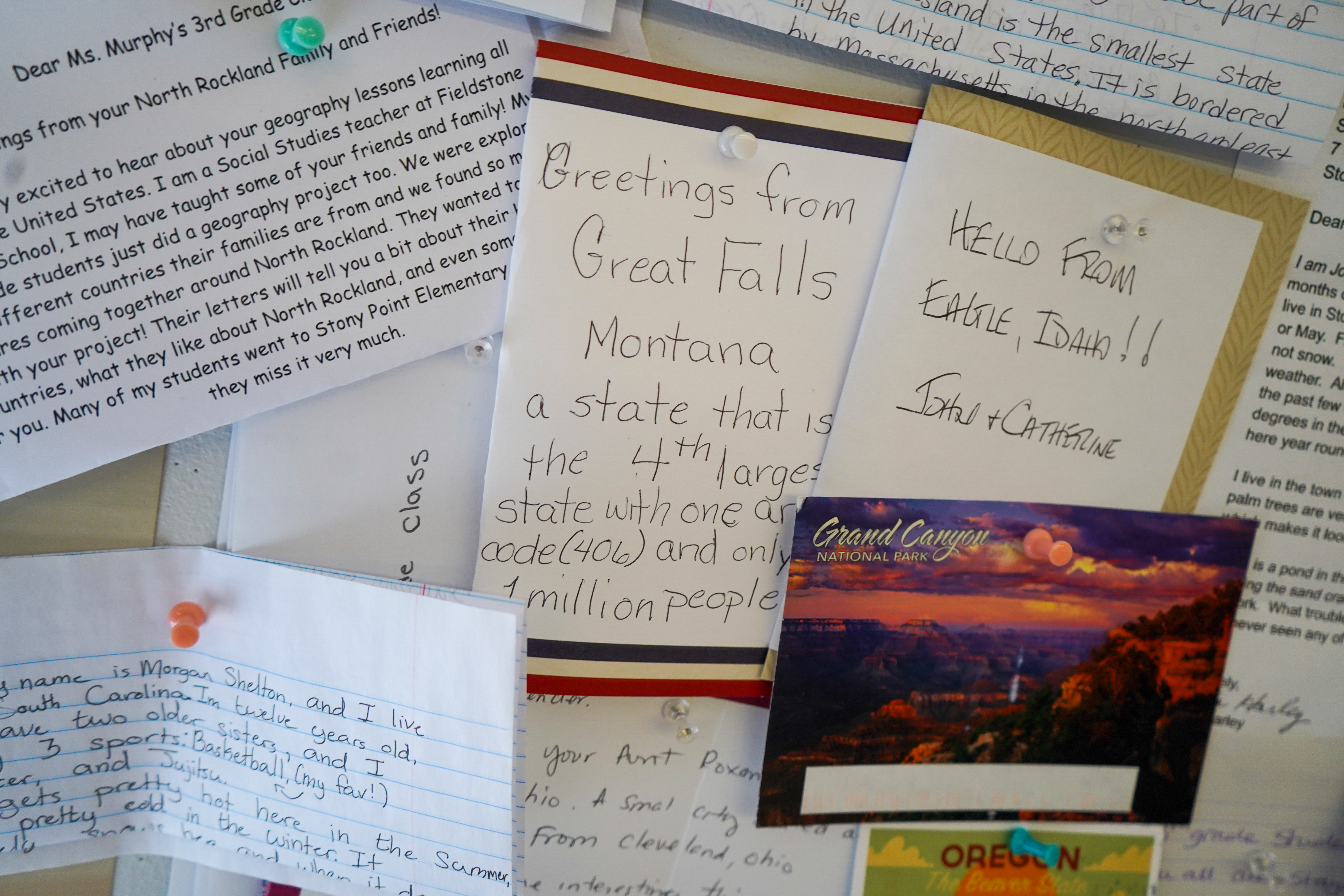 The Road to 50. Third grade classes led by Danielle Blickley at Theills Elementary and Lauren Murphy at Stony Point Elementary teamed up for a friendly geography challenge: collect mail from all 50 states.