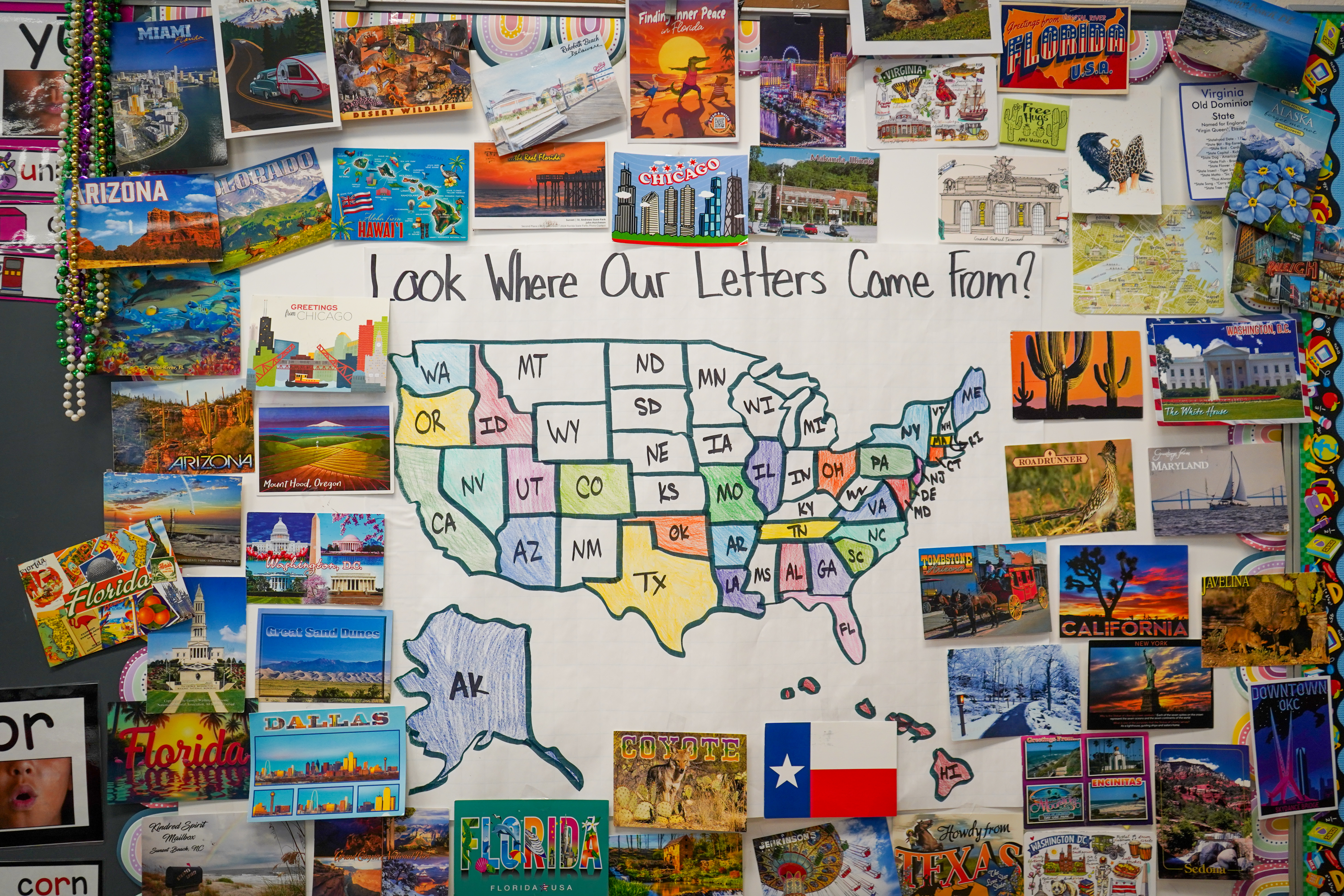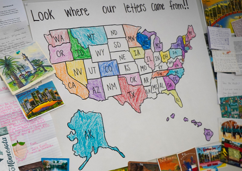 Along the way, students strengthened their understanding of U.S. geography, climate and culture while learning how to write letters, address envelopes and respond with thoughtful thank-you notes. In the end, the two classes were just 10 states shy of receiving mail from all 50 and each postcard represented a meaningful connection with someone who took the time to support their learning.
